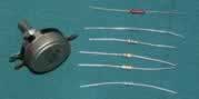 高频特性:电阻器使用在高频条件下,要考虑其固定有电感和固有电容的影响。这时,电阻器变为一个直流电阻(R0)与分布电感串联,然后再与分布电容并联的等效电路,非线绕电阻器的LR=0.01-0.05微亨,CR=0.1-5皮法,线绕电阻器的LR达几十微亨,CR达几十皮法,即使是无感绕法的线绕电阻器,LR仍有零点几微亨。